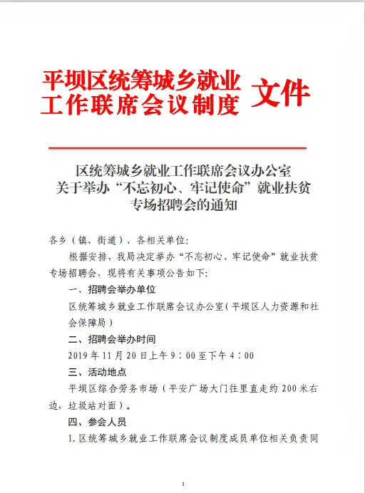 2019年安順是平壩區(qū)舉辦“不忘初心、牢記使命”就業(yè)扶貧專(zhuān)場(chǎng)招聘會(huì)(11月20日舉辦)