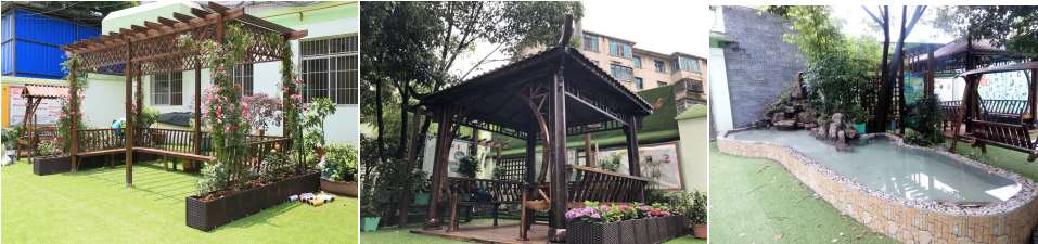 操場上,我們有亭子、秋千、水池,讓孩子們在課間快樂運動,快樂生活,快樂游戲。