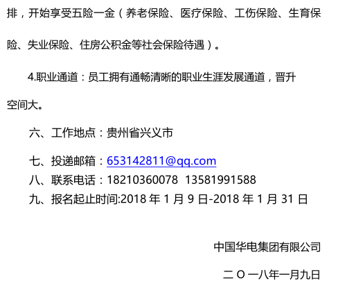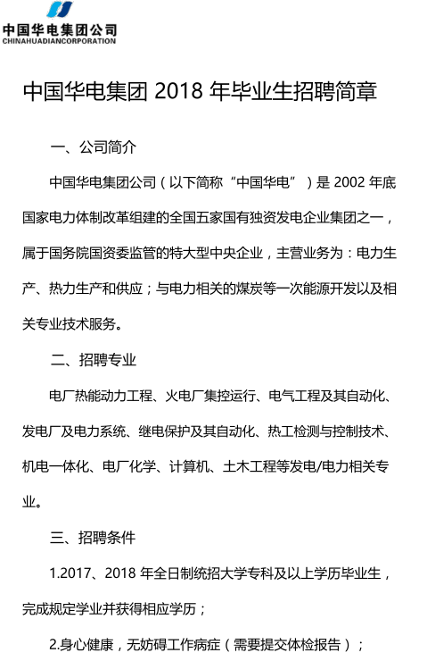 中國(guó)華電集團(tuán)2018年畢業(yè)生招聘簡(jiǎn)章(報(bào)名截止1月31日)